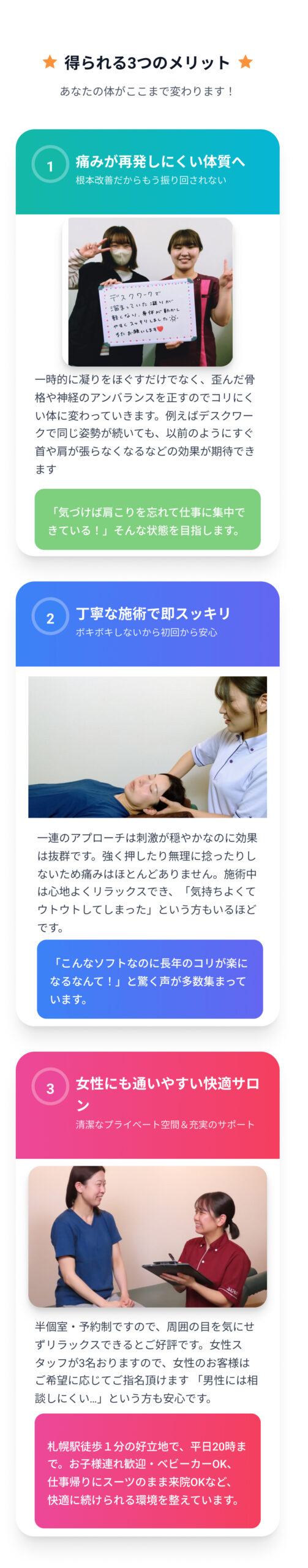 札幌駅徒歩3分|頭痛・首・肩こりを根本から改善する女性支持率75%の整体院