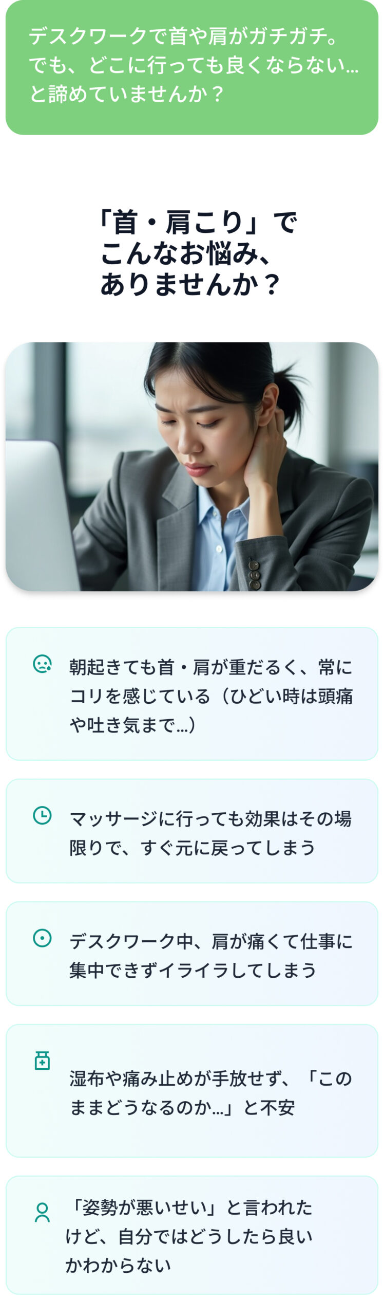 もう限界...首・肩こりを根本からスッキリ解消しませんか?