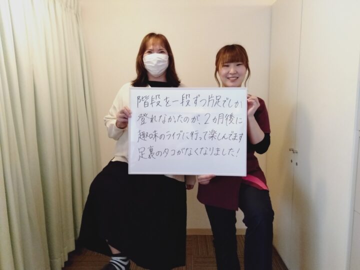 膝の痛みと腰痛で階段を一段ずつしか登れませんでしたが、痛みが改善し2か月後には趣味のライブに遠征して立ちっぱなしでも大丈夫!